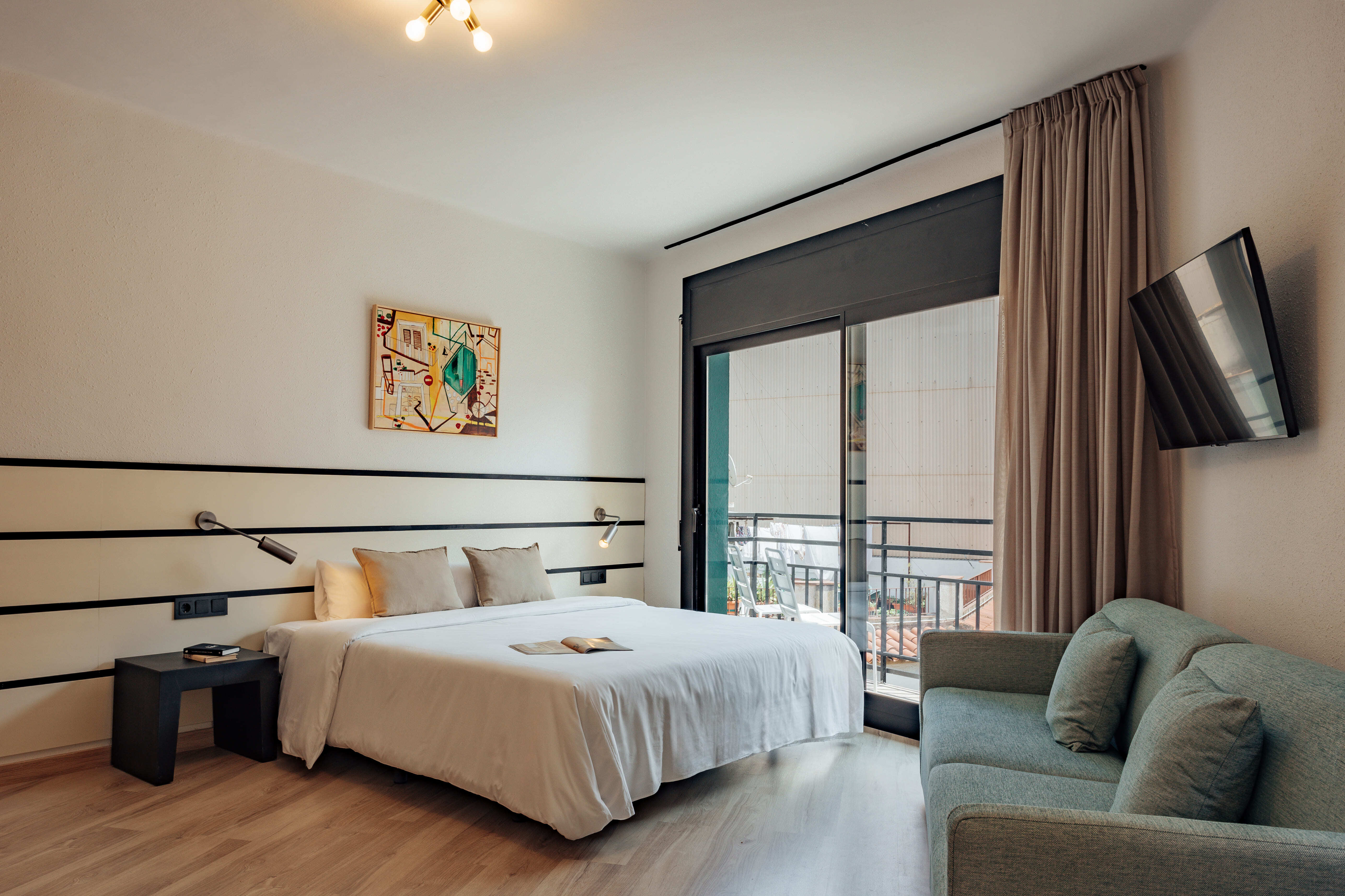 La escapada perfecta en familia: diseño, comodidad y un balcón para disfrutar del ambiente mediterráneo.